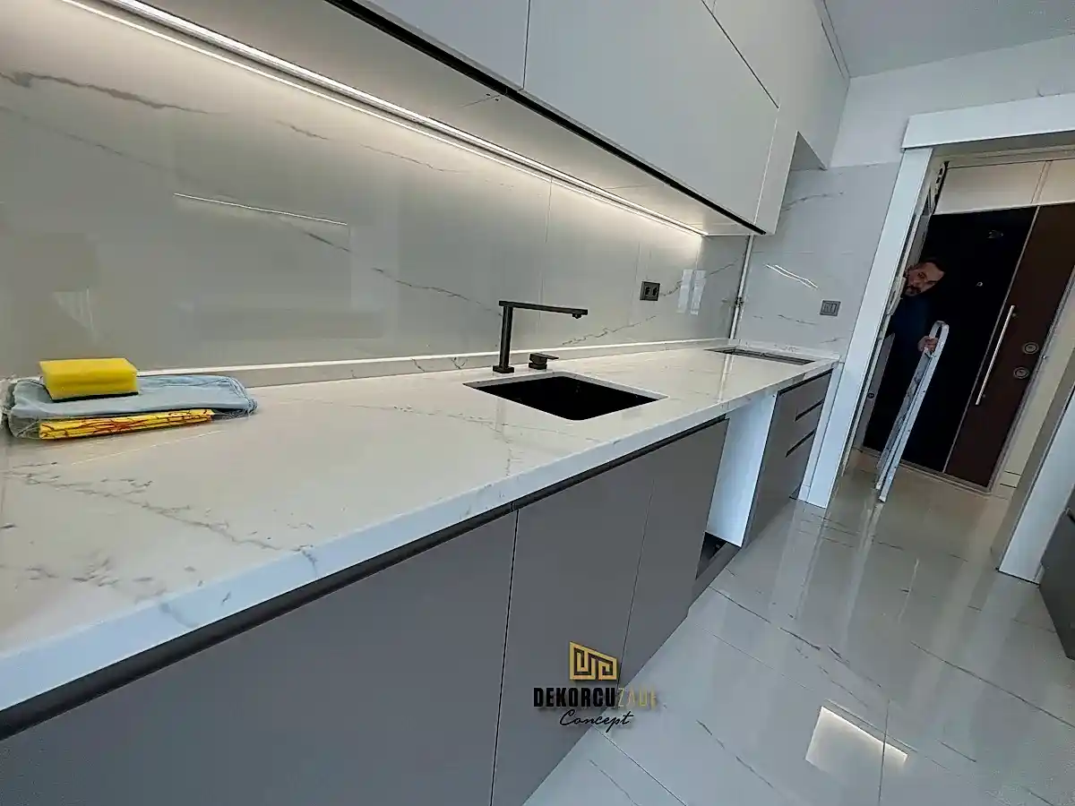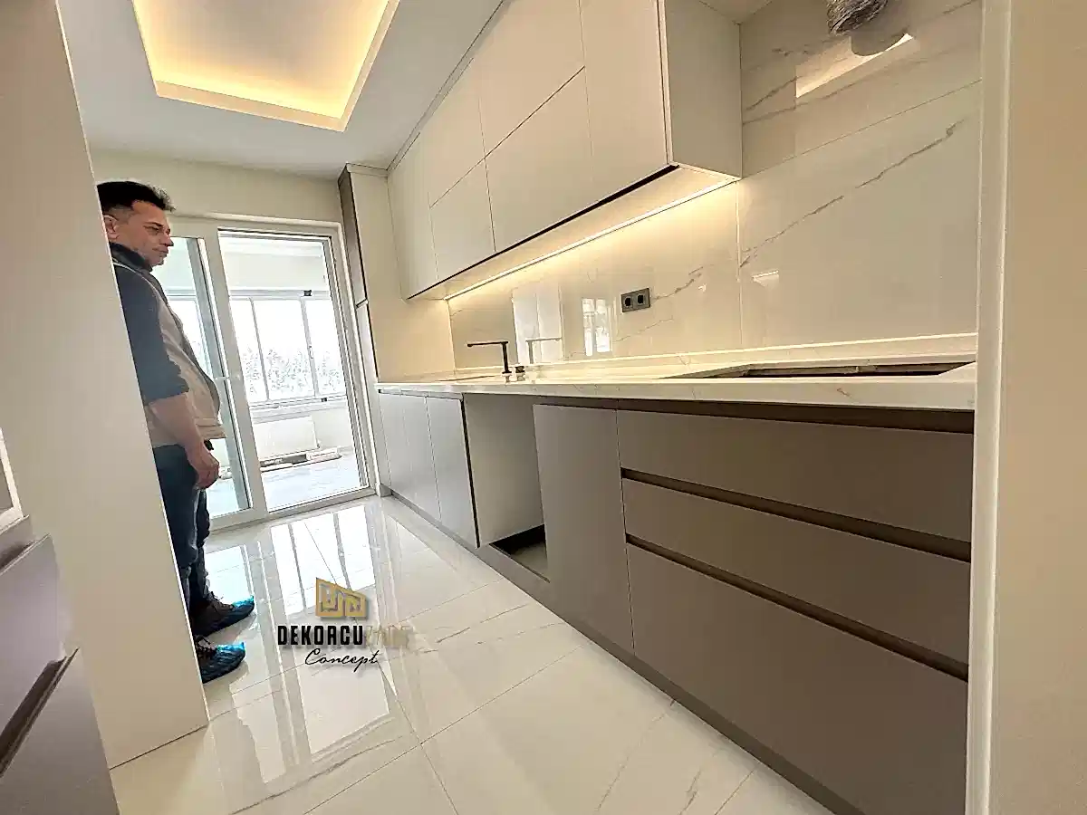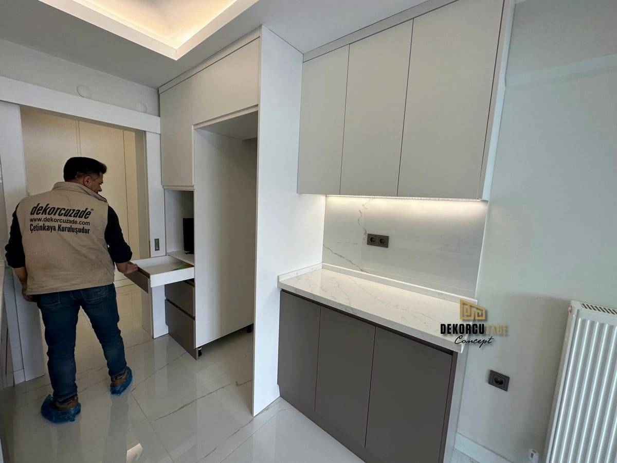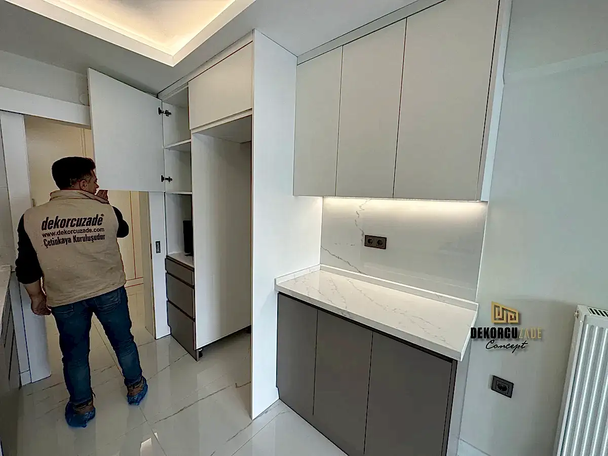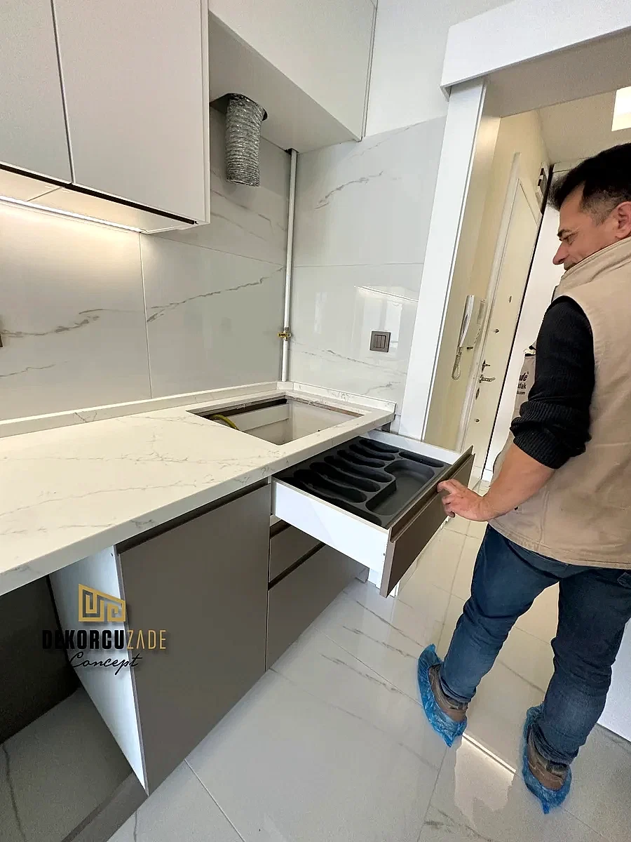Bizler DekorcuZade concept olarak 100 kişilik tadilat ekibine, 25 kişilik sitelerdeki fabrikamızda ahşap ve mutfak ekibine sahibiz. Bu anlamda DekorcuZade’de sokaktan toplama usta yoktur. Ekip ve tüm ustalar kendi bünyemizde kendi ustalarımızdır. Zaman ve zamanlama yani söz verilen iş başlangıcı ve iş teslim süresi çok önemlidir. Ve bizler bu konuda çok hassasız.