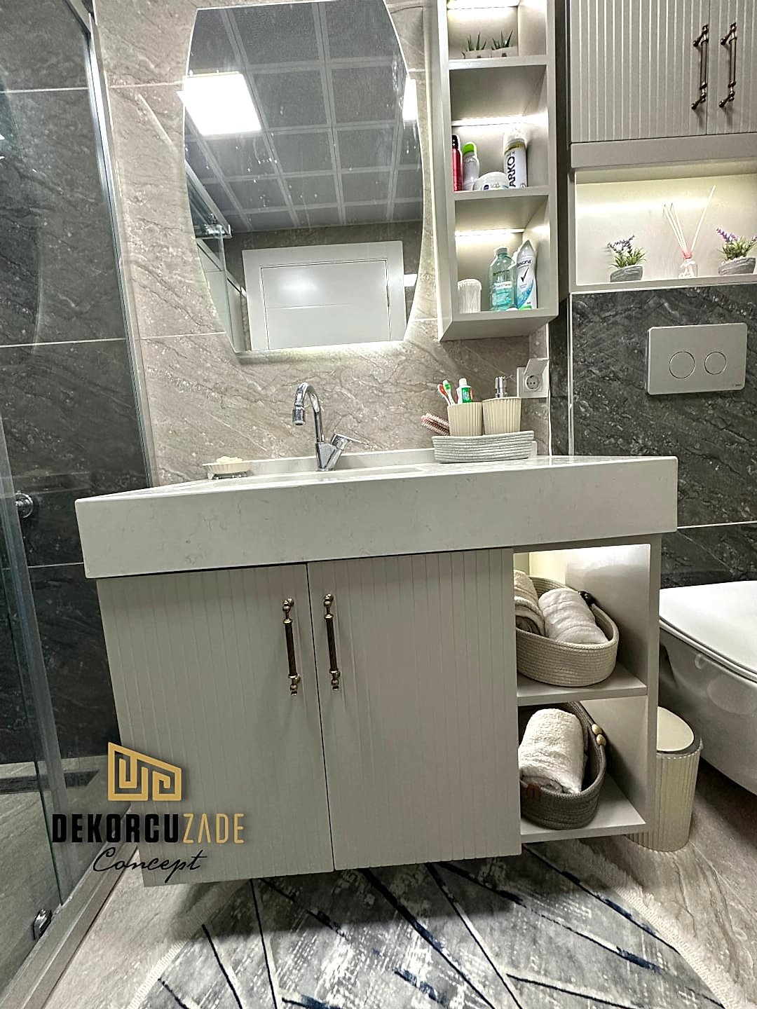 DEKORCUZADE CONCEPT tüm ürünlerini ( Mutfak, kapı, mobilya, gardolap, dresuar ve her türlü kişiye özel ahşap dekorasyon ) Havaalanı yolundaki kendi fabrikalarında Yüksek mobilya mimarisi ve % 100 el emeği % 100 göz nuru ile üretmektedir. Ayrıca boyahanemizde aynı üretim tesisinin içinde olup tüm üretim ve montaj Dekorcuzade Ustaları tarafından yapılmaktadır. Montajlardan önce yapılan mobilyanızı yada kapınızı görmeniz ve teslimattan önce onay vermeniz için atölyemize sizleri davet ediyoruz.