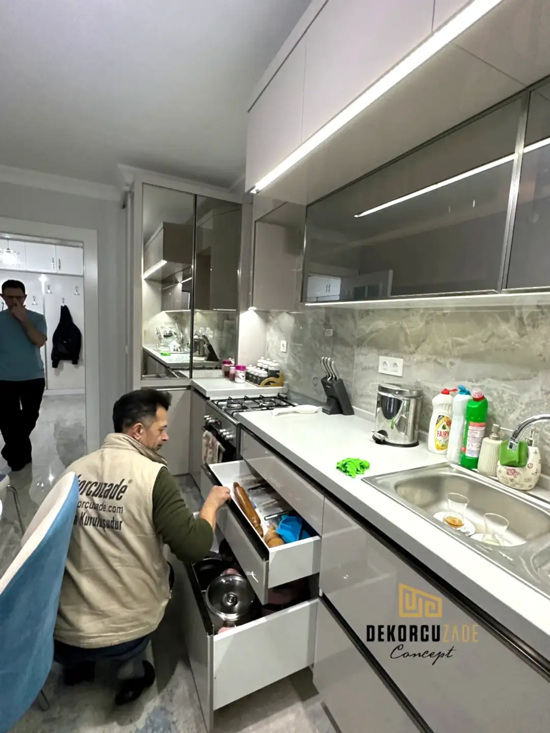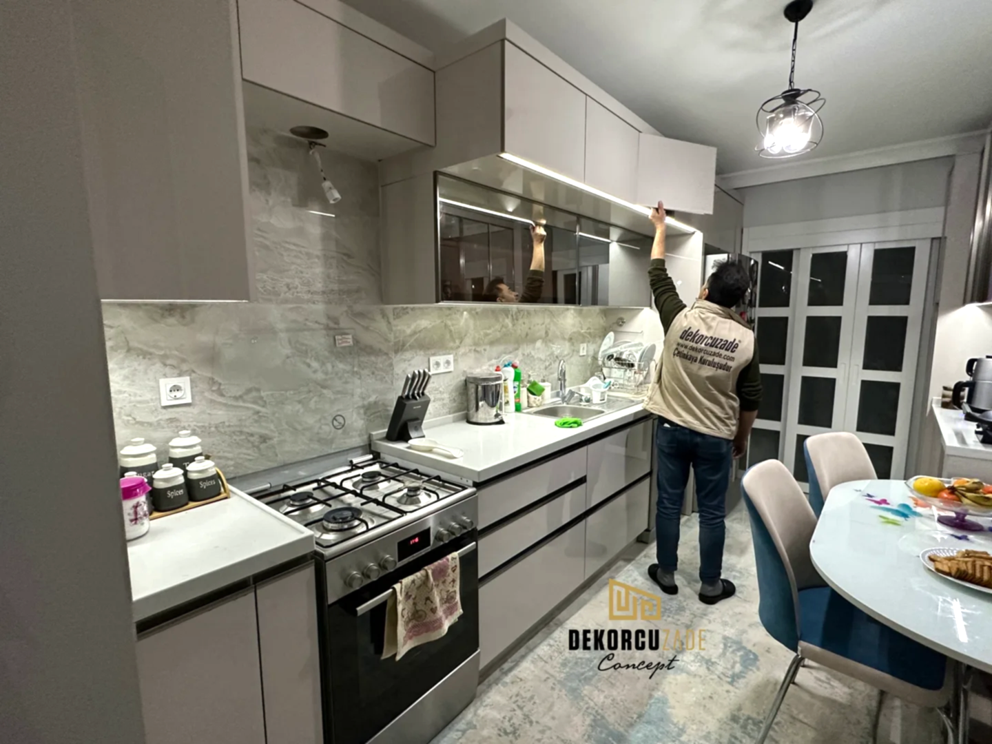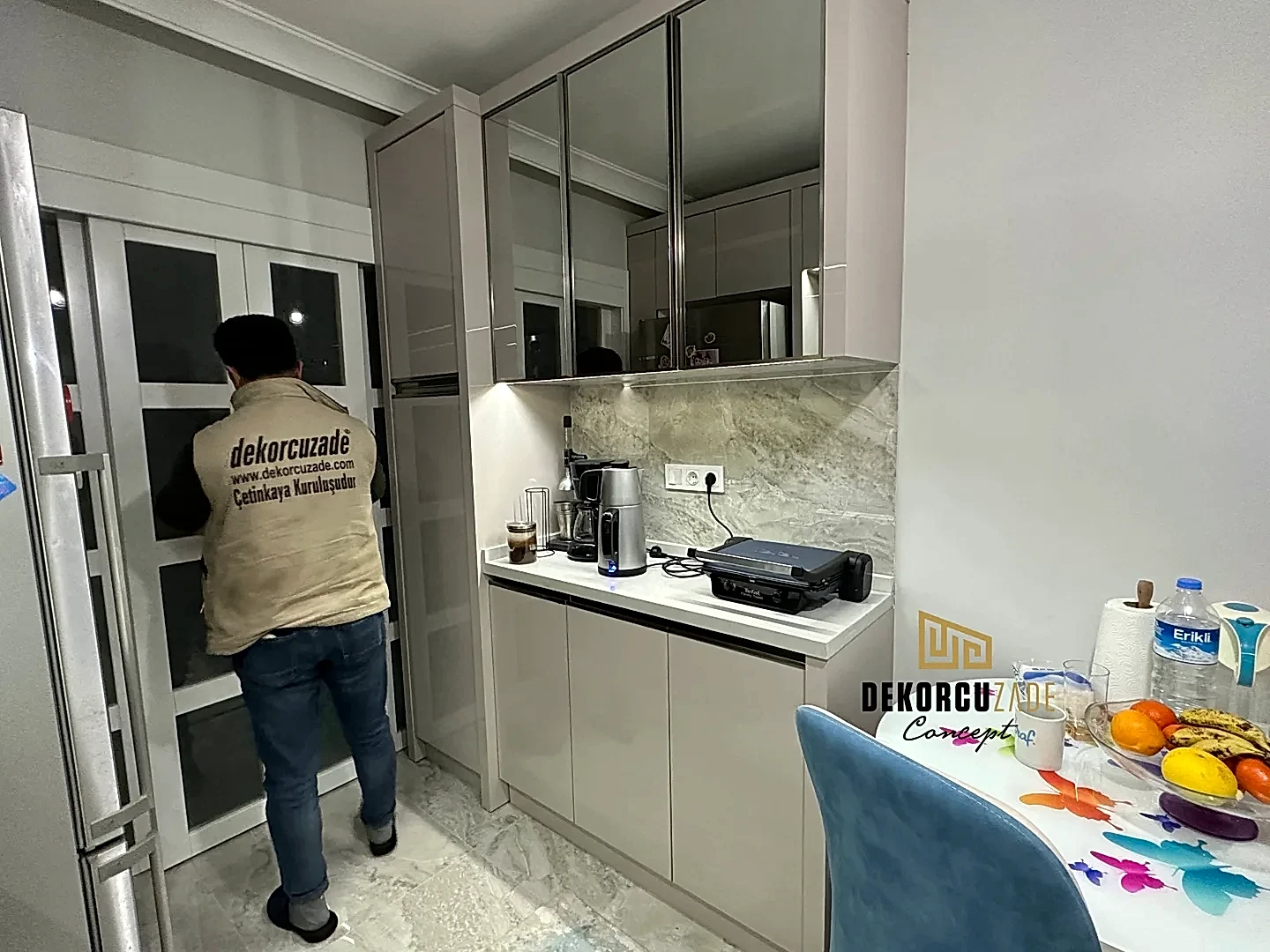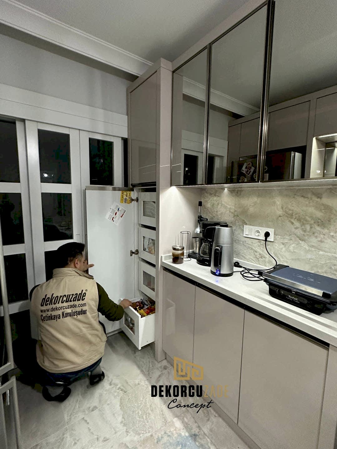 Bizler DekorcuZade concept olarak 100 kişilik tadilat ekibine, 25 kişilik sitelerdeki fabrikamızda ahşap ve mutfak ekibine sahibiz. Bu anlamda DekorcuZade’de sokaktan toplama usta yoktur. Ekip ve tüm ustalar kendi bünyemizde kendi ustalarımızdır. Zaman ve zamanlama yani söz verilen iş başlangıcı ve iş teslim süresi çok önemlidir. Ve bizler bu konuda çok hassasız.