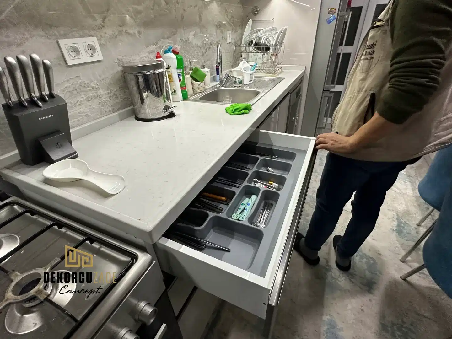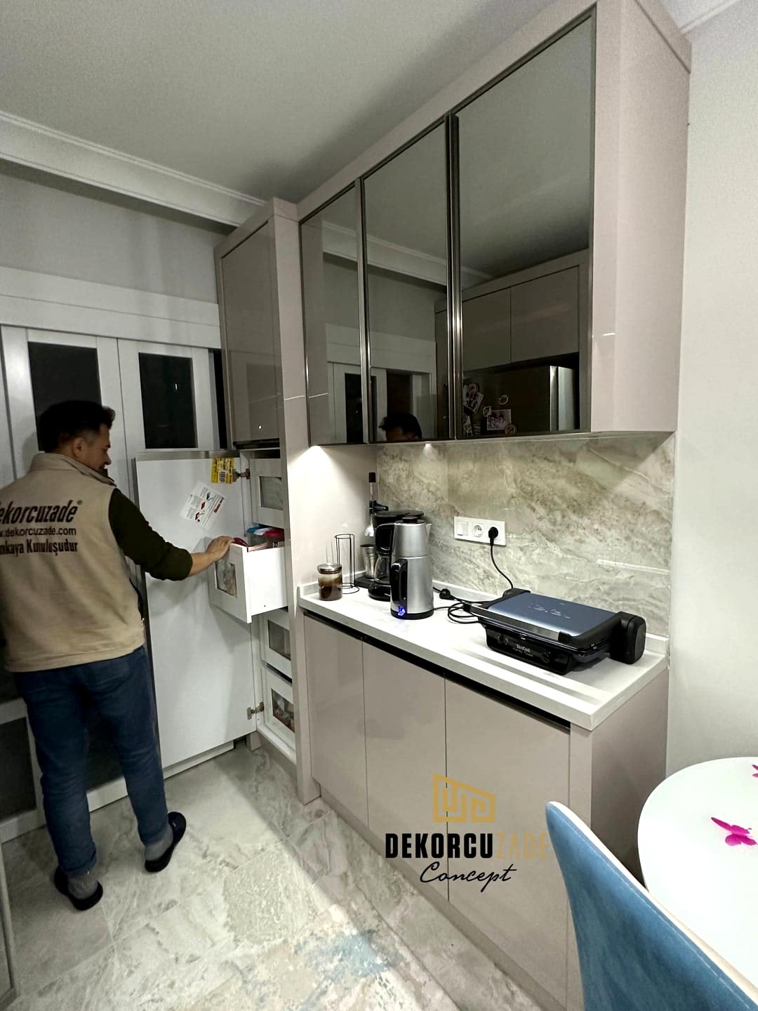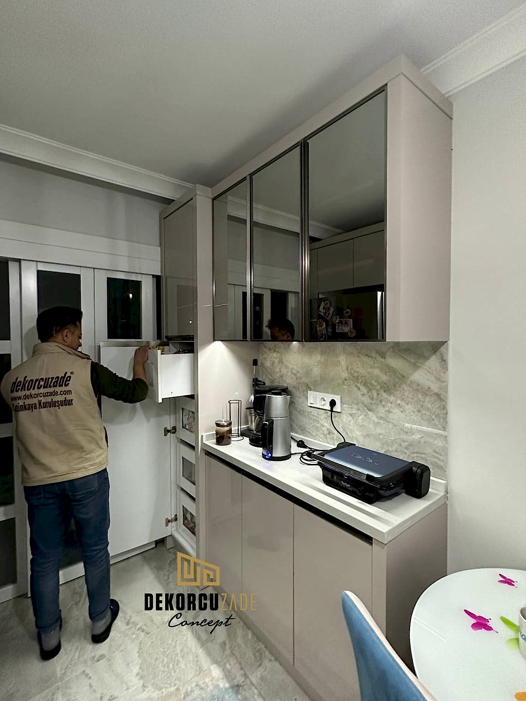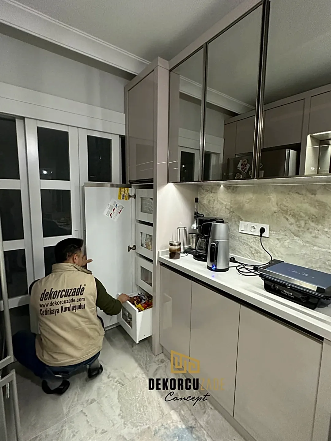 Bizler DekorcuZade concept olarak 100 kişilik tadilat ekibine, 25 kişilik sitelerdeki fabrikamızda ahşap ve mutfak ekibine sahibiz. Bu anlamda DekorcuZade’de sokaktan toplama usta yoktur. Ekip ve tüm ustalar kendi bünyemizde kendi ustalarımızdır. Zaman ve zamanlama yani söz verilen iş başlangıcı ve iş teslim süresi çok önemlidir. Ve bizler bu konuda çok hassasız.