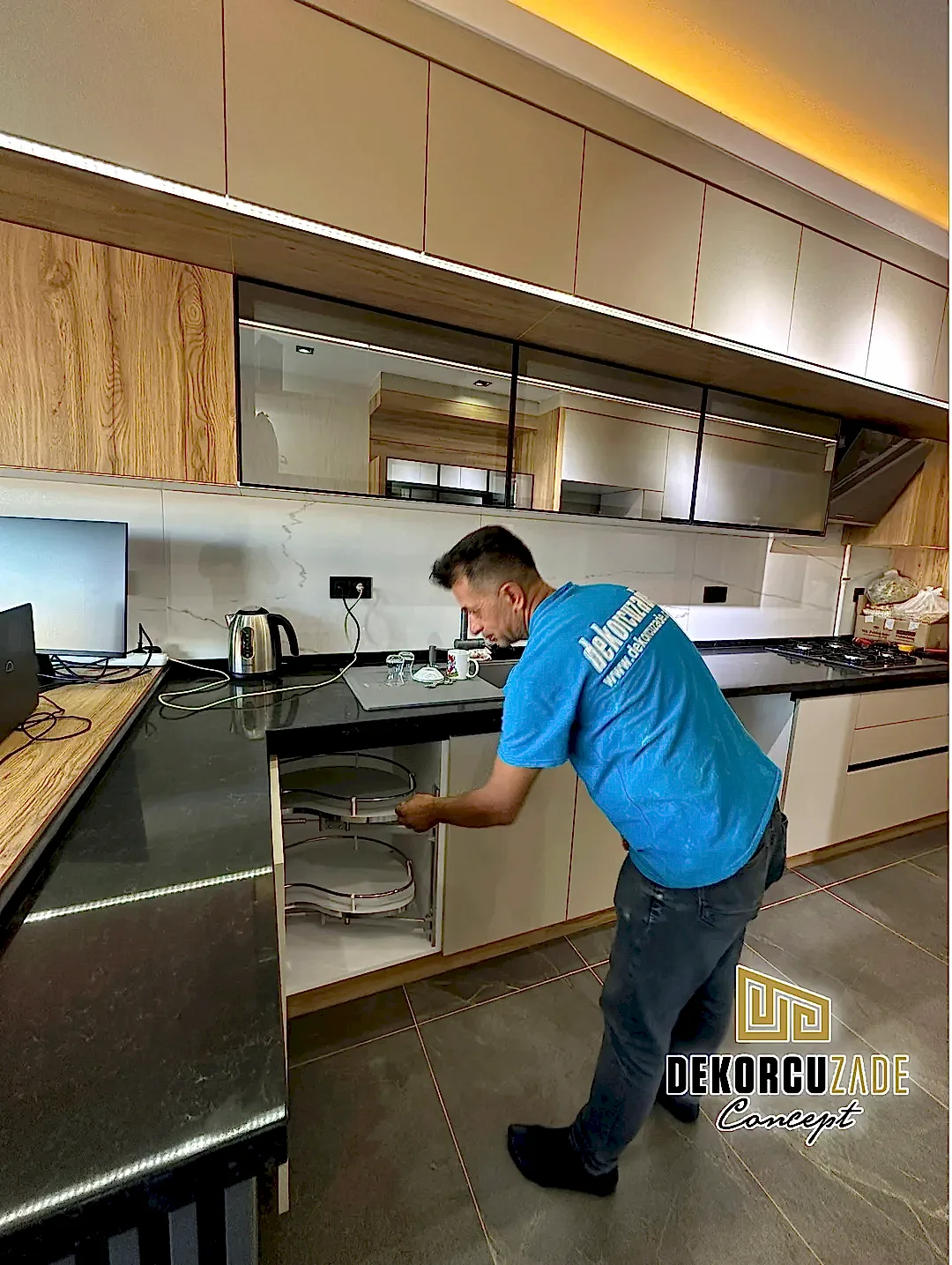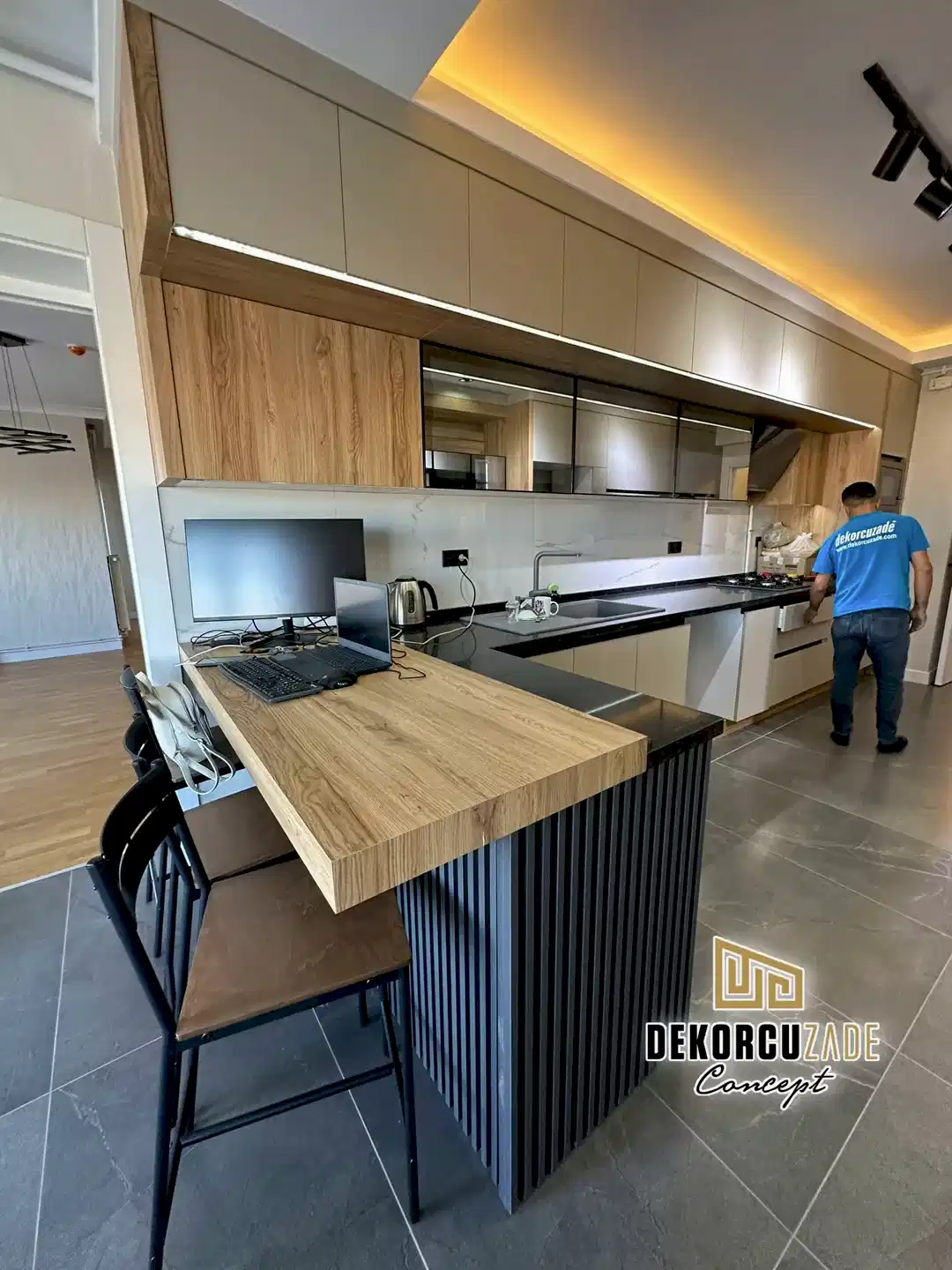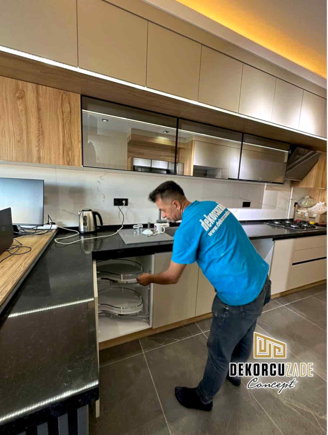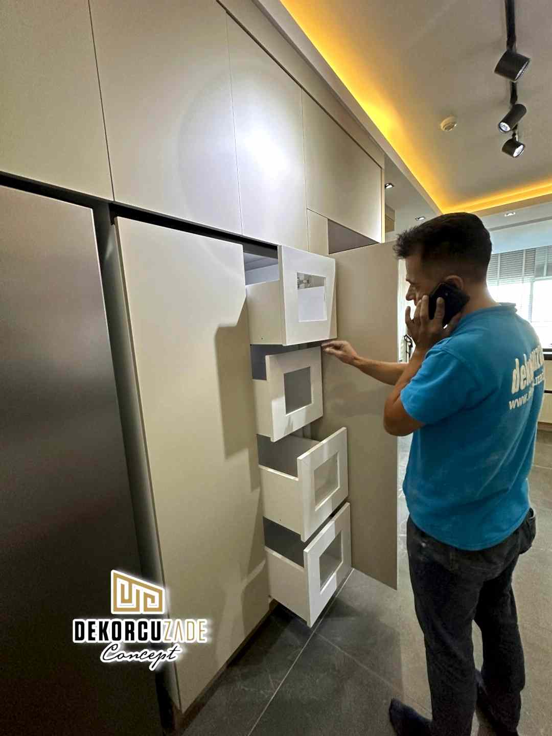 Bizler DekorcuZade concept olarak 100 kişilik tadilat ekibine, 25 kişilik sitelerdeki fabrikamızda ahşap ve mutfak ekibine sahibiz. Bu anlamda DekorcuZade’de sokaktan toplama usta yoktur. Ekip ve tüm ustalar kendi bünyemizde kendi ustalarımızdır. Zaman ve zamanlama yani söz verilen iş başlangıcı ve iş teslim süresi çok önemlidir. Ve bizler bu konuda çok hassasız.