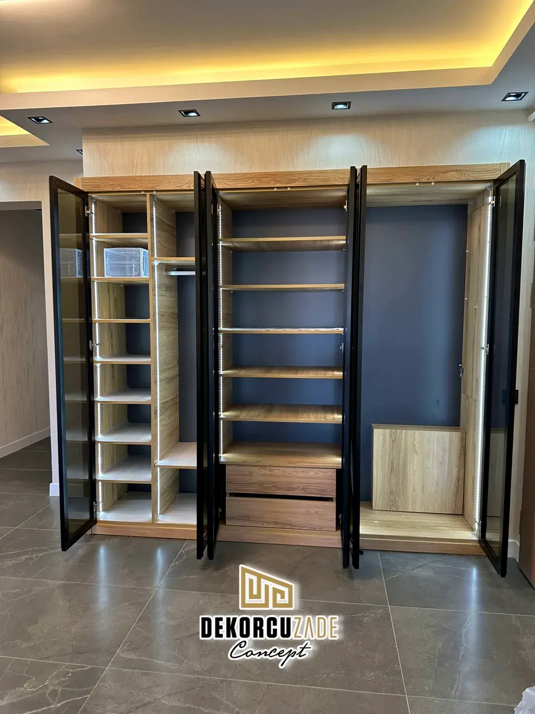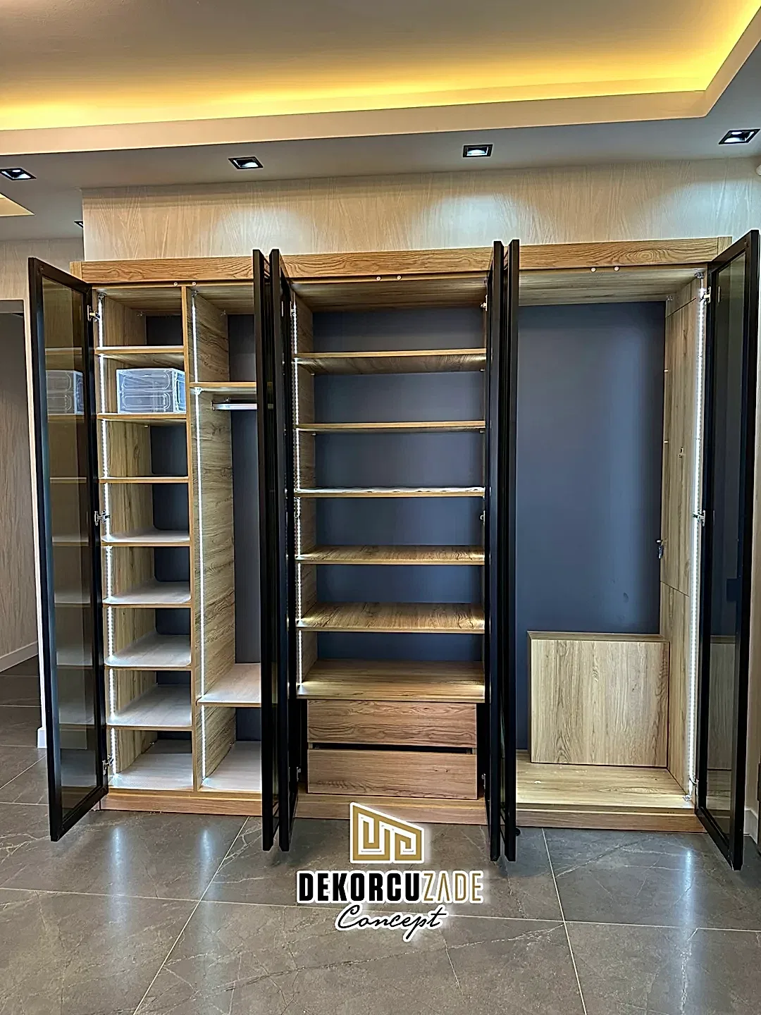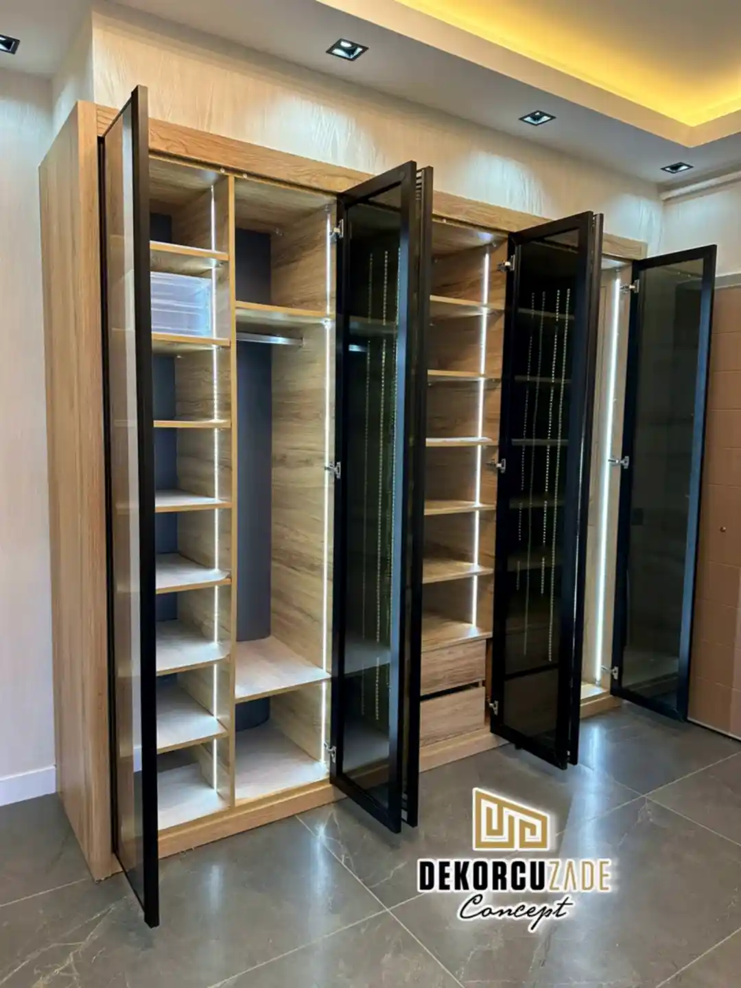 DEKORCUZADE CONCEPT tüm ürünlerini ( Mutfak, kapı, mobilya, gardolap, dresuar ve her türlü kişiye özel ahşap dekorasyon ) Havaalanı yolundaki kendi fabrikalarında Yüksek mobilya mimarisi ve % 100 el emeği % 100 göz nuru ile üretmektedir. Ayrıca boyahanemizde aynı üretim tesisinin içinde olup tüm üretim ve montaj Dekorcuzade Ustaları tarafından yapılmaktadır. Montajlardan önce yapılan mobilyanızı yada kapınızı görmeniz ve teslimattan önce onay vermeniz için atölyemize sizleri davet ediyoruz.