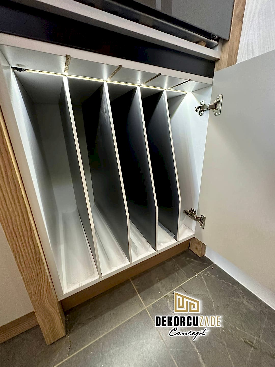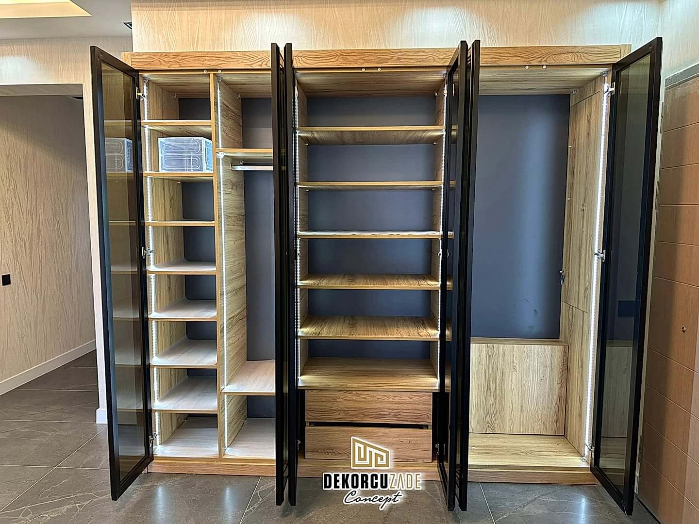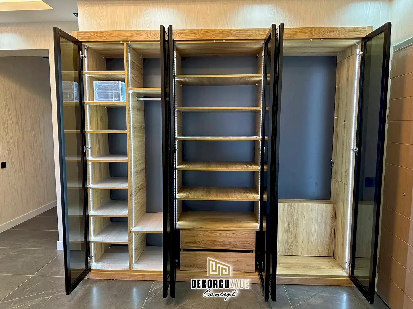 DEKORCUZADE CONCEPT tüm ürünlerini ( Mutfak, kapı, mobilya, gardolap, dresuar ve her türlü kişiye özel ahşap dekorasyon ) Havaalanı yolundaki kendi fabrikalarında Yüksek mobilya mimarisi ve % 100 el emeği % 100 göz nuru ile üretmektedir. Ayrıca boyahanemizde aynı üretim tesisinin içinde olup tüm üretim ve montaj Dekorcuzade Ustaları tarafından yapılmaktadır. Montajlardan önce yapılan mobilyanızı yada kapınızı görmeniz ve teslimattan önce onay vermeniz için atölyemize sizleri davet ediyoruz.
