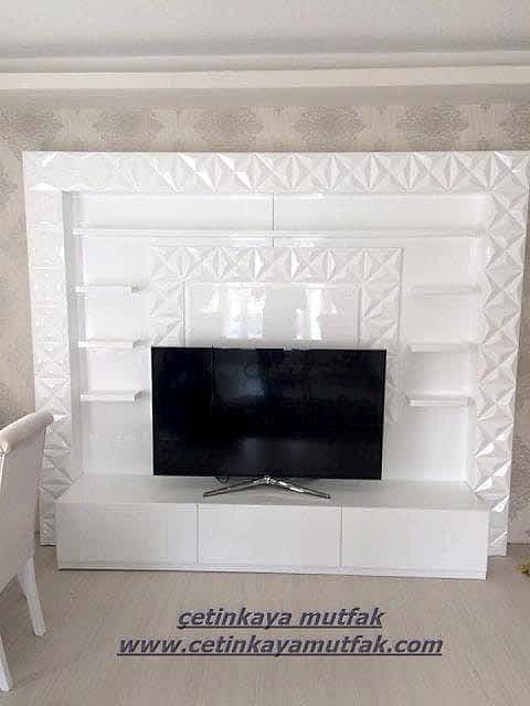 Hayatı kolaylaştıran ve ev dekorasyonuna bir başka görünüm sağlayan tv üniteleri bir çok dekorasyonda vazgeçilmezlerdendir. Tv plazma ünitesi ve mobilya alanında aradığınız her ürünü size özel olarak tasarlar.Özel Tasarımları firmamız sizin için tasarlar ve üretir. mekana ve taleplerinize uygun tasarımlar hazırlayarak ihtiyaç duyduğunuz fonksiyonelliğe istediğiniz alanda sahip olma şansı verir. Üretim öncesinde 3 boyutlu çizimlerle tasarım sürecini kolaylaştırır ve hata payını minimum düzeye indirir. Tasarım ve hazırlama sürecini en kısa sürede değil ideal bir zamanda hazırlanarak teslim edilir.Kaliteli işçilik ve kaliteli malzemeler ile uzun süre kullanışlı ve keyfinize uygun üretimler yapmak için tasarım ve üretim kriterlerinden taviz verilmez.