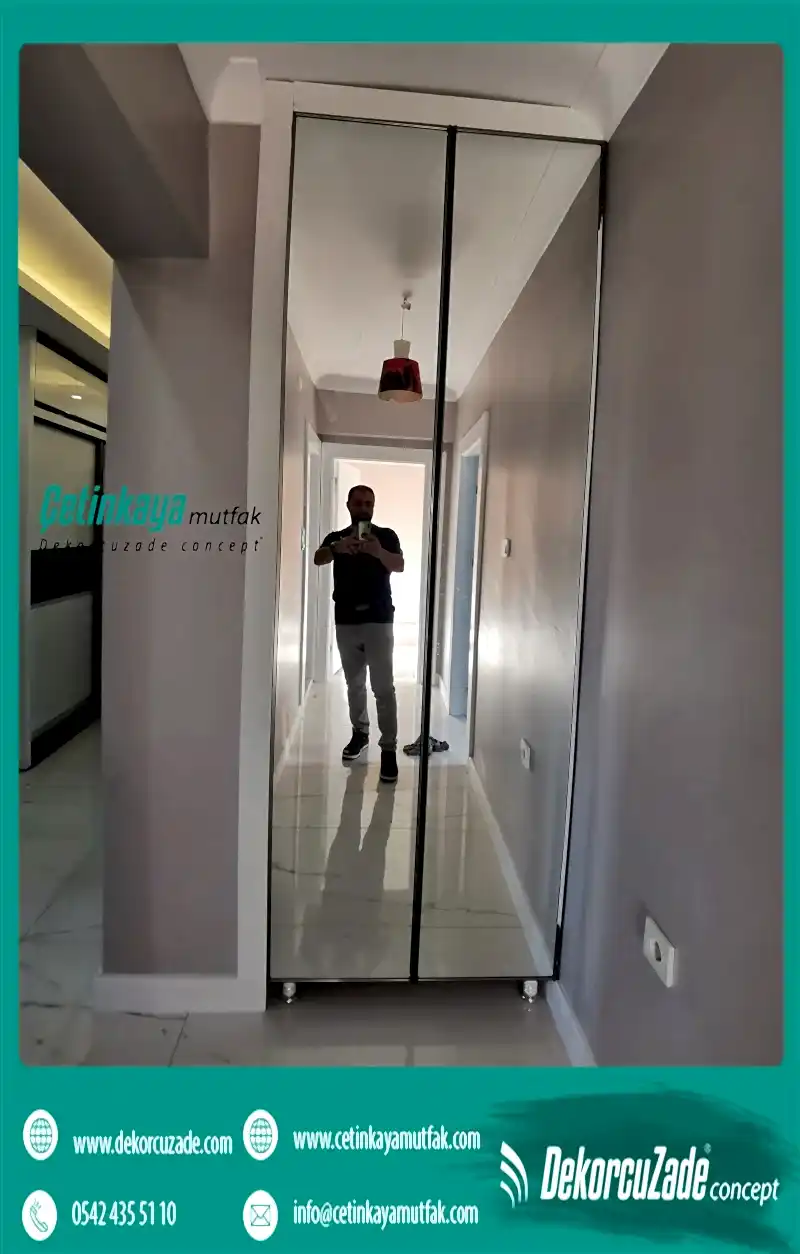 Yeterli alan olmamasına rağmen görsel açıdan rahatsızlık verici bir izlenim yaratmak istemiyorsanız kapaklı modeller yerine sürgülü portmanto modellerini de tercih edebilirsiniz. Aynalı tasarımlarda portmantoyu olabildiğince kapının karşısında kalacak şekilde konumlandırmaya çalışmalıyız. Ayrıca aksesuar özelliği taşıyan aynalar, evin daha ferah olmasını sağlar ve tasarım anlamında eve özgür bir zenginlik sunar.